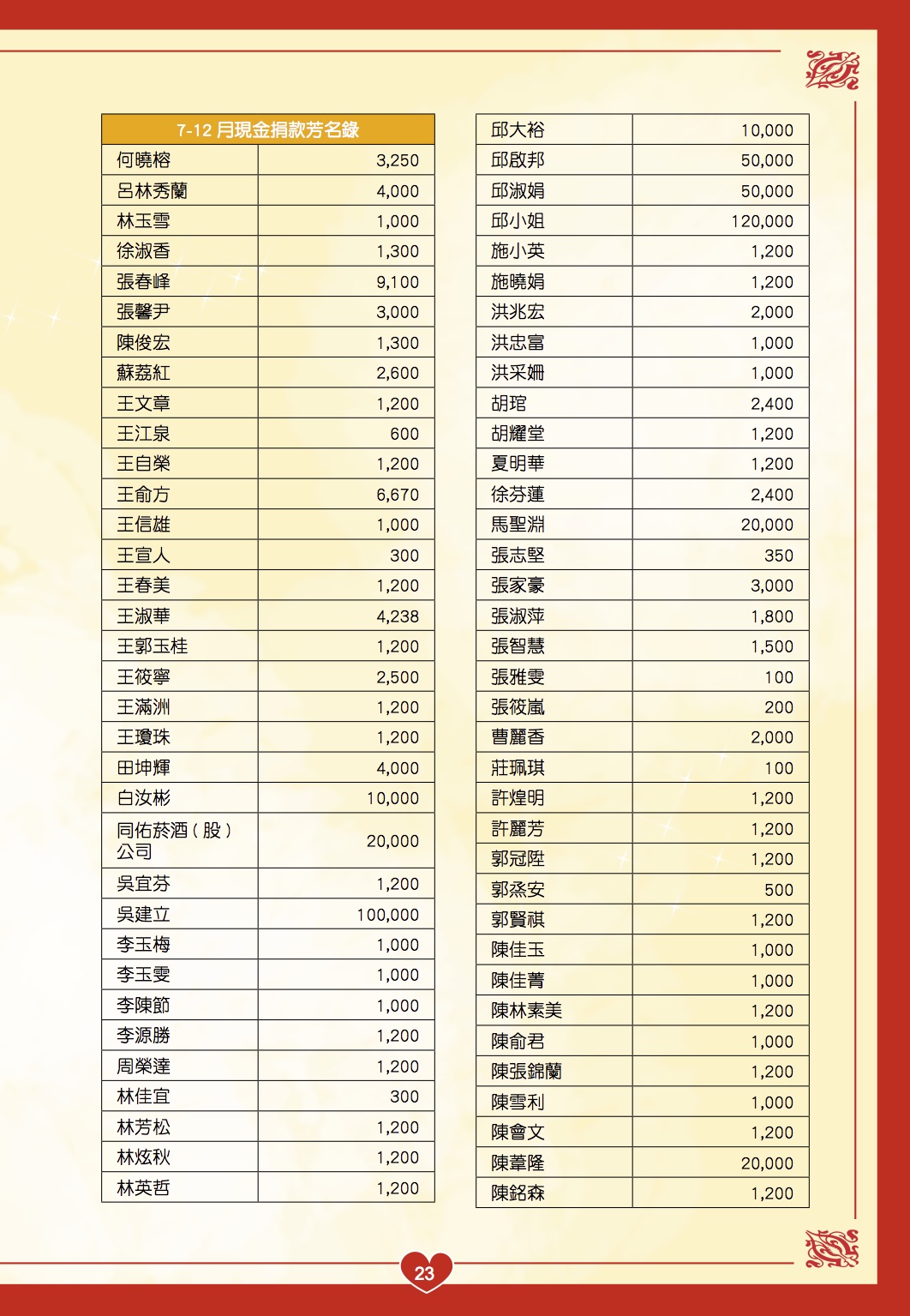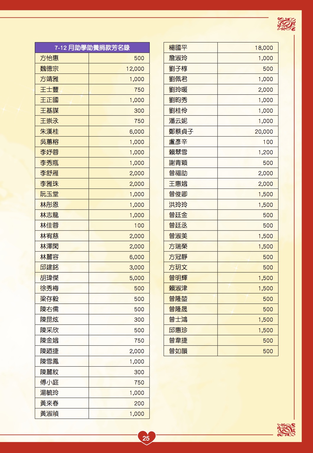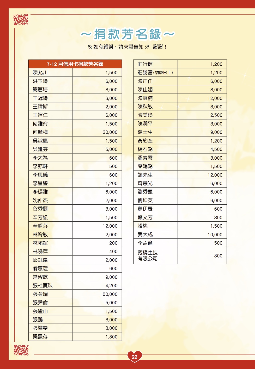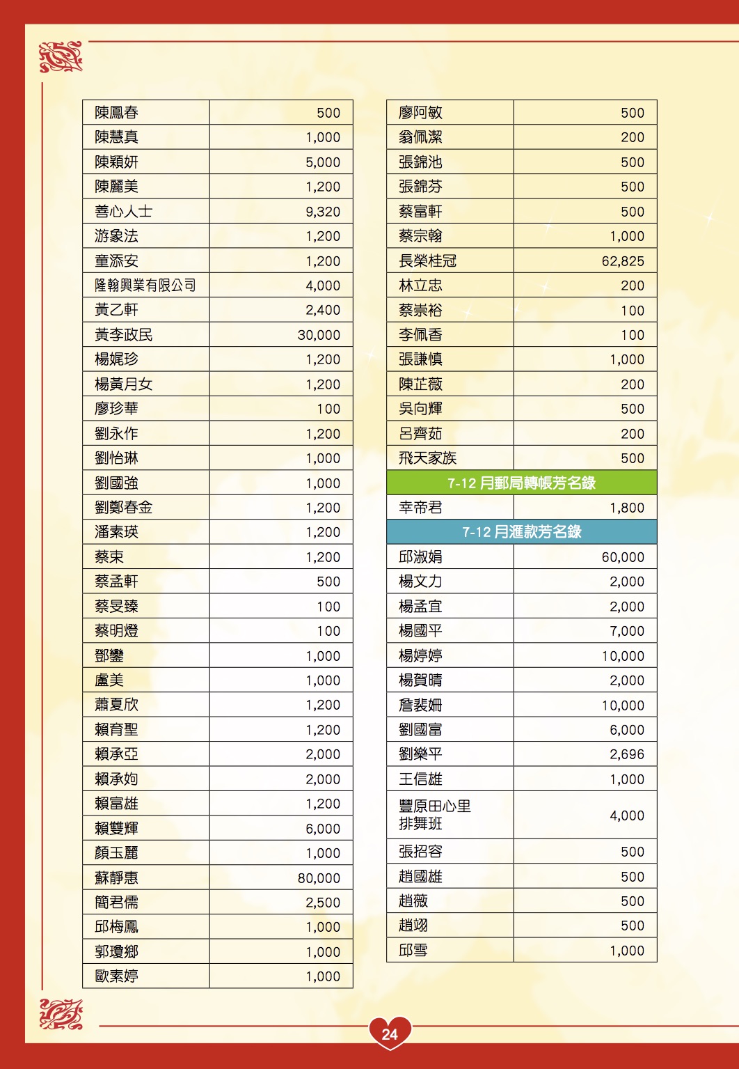 慢飛家族 102年7-12月捐款徵信錄
